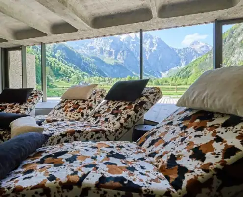 Het alpine eco-wellnesscentrum combineert water, steen, hout en licht voor een luxe wellnesservaring met architectonisch doordachte ruimtes.